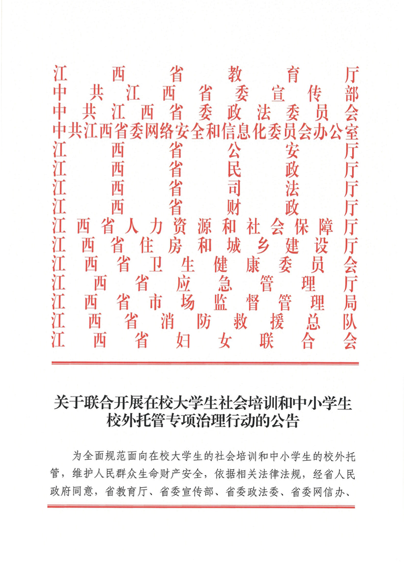 关于联合开展在校大学生社会培训和中小学生校外托管专项治理行动的通知